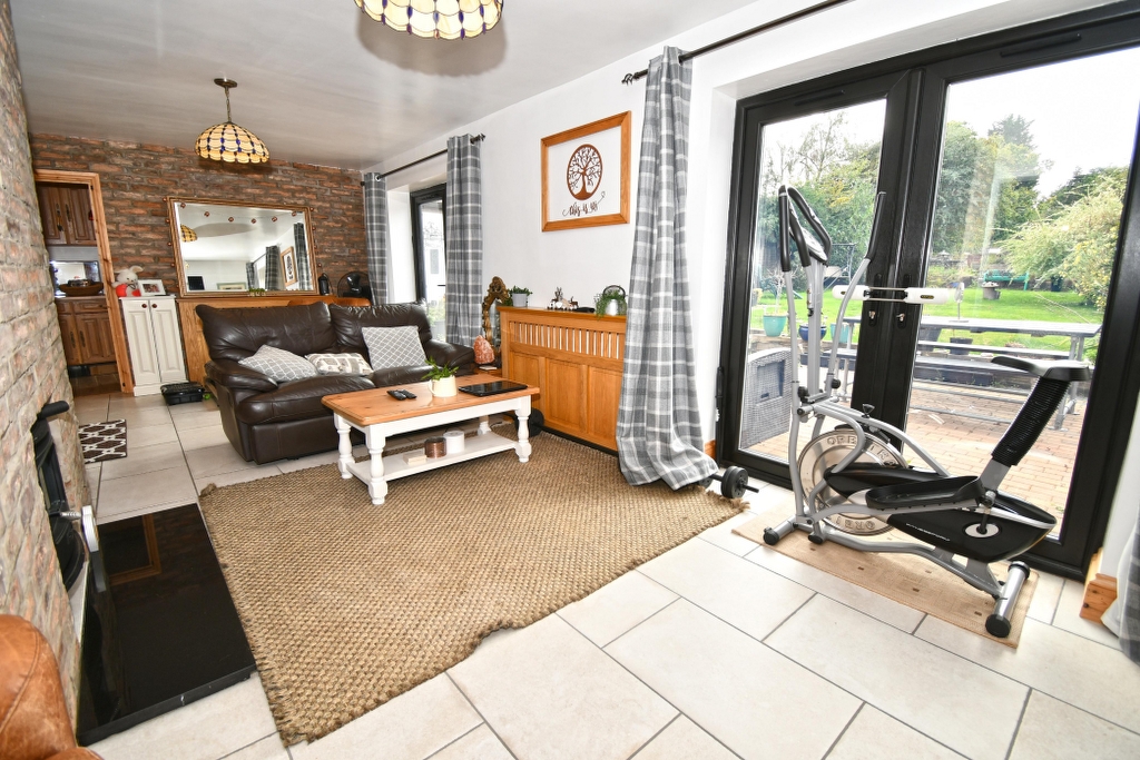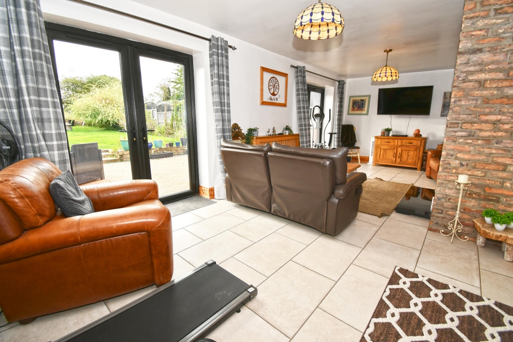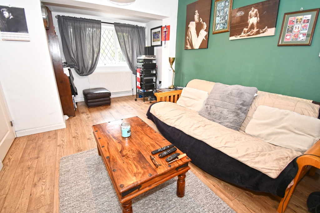 SITTING ROOM 16’5 x 10 Leaded light window with front aspect, wood effect flooring, radiator, television and media points.