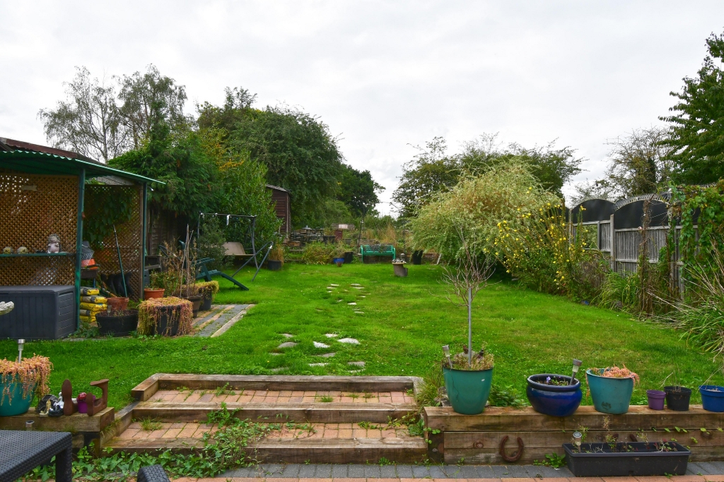 Rear Garden – The rear garden enjoys a westerly aspect and extends to over 100′. Laid principally to lawn the garden is well secluded with panelled fencing and mature conifers. To one side of the garden is a square terrace and under cover barbeque area. Steppingstones lead to the third level of the garden where there is an ornamental fishpond and timber garden shed. Directly behind the property is a wide paved sun terrace offering a sunny spot from where to sit and enjoy the garden. There are light and water supplies connected.
